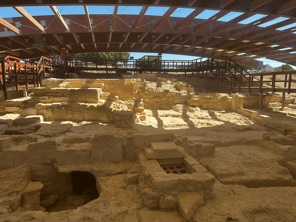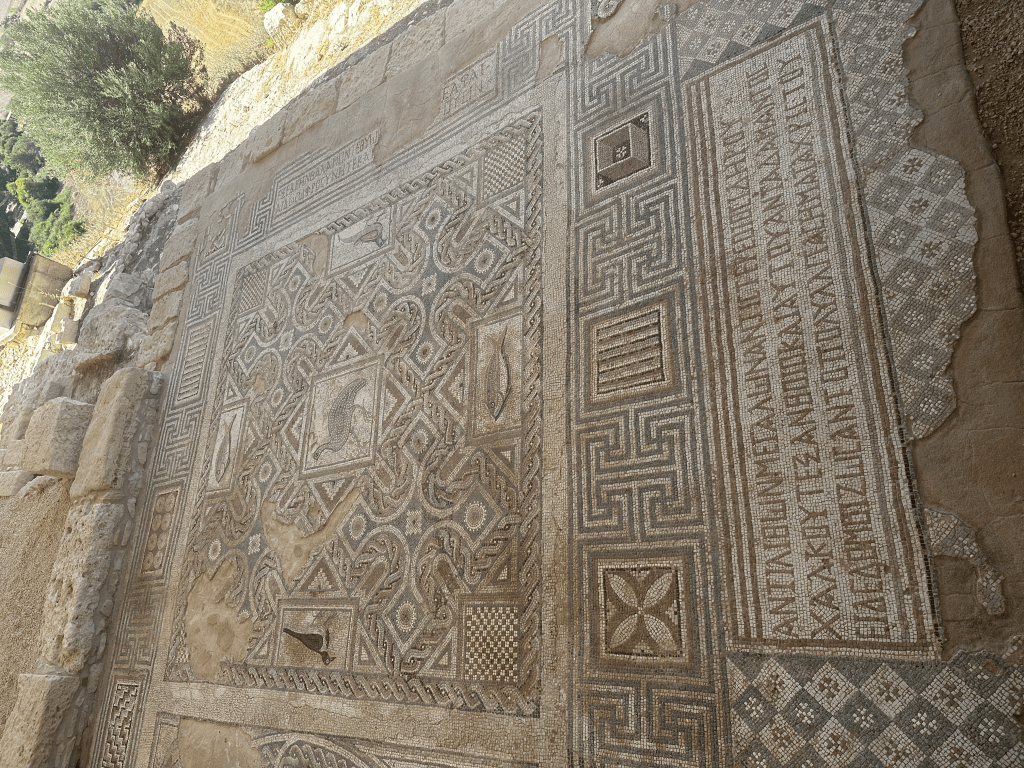 At the ancient site of Kourin there are a series of stunning floor mosaics that depict various geometric patterns and animals. They are part of a larger complex made up of a private house and a public bathhouse which were owned by a man named Eustolios. Eustolios’ complex would be remodeled during the reign of Theodoius II which was towards the end of the Roman Empire at 408-450 CE and a time of religious change. Prior to renovation, Kourion would be hit with a devastating set of earthquakes from 365-370 which would leave much of the city destroyed. These two factors would provide the backdrop for the mosaics: an empire slowly leaving behind its pagan past to embrace Christianity, and a city devastated by natural disasters.