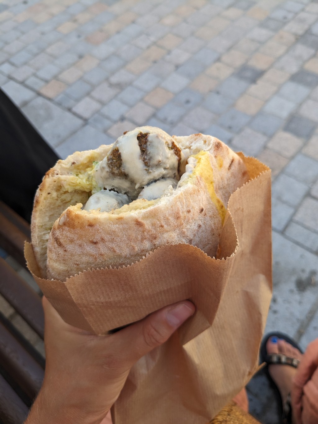 For all my fellow vegans out there, let me tell you that you will not go hungry in Cyprus! There are incredibly fresh fruits and veggies, falafel galore, a delicious selection of nuts, and pita bread, pita bread, pita bread. These tasty flat breads can be found in every market and stuffed with just about anything you desire, and you have options when it comes to the kind of pita you are looking for. While sharing a common name, Cypriot pita differs from both Greek and Lebanese pita, and it is no surprise with a 4,000-year-old history in the Mediterranean that this delicious dough has taken a unique shape depending on its geographical location. Being closest together on a map has also resulted in Lebanese and Cypriot pita being more similar than Greek pitas. Cypriot pita, like Lebanese pita, is thin and oval in shape compared to Greek pita which is thicker and circular. Unlike Greek pita which is rolled, Cypriot pitas are stuffed with food, and while Greek pita is usually grilled, Cypriot pita is baked. A vegan Cypriot meal that I have found to be very common, tasty and often very cheap is a falafel pita. Served in the Cypriot fashion it is stuffed with fresh tomato, cucumber, parsley and if you are lucky hummus or the most delicious tahini I have ever had. Pita bread is an obvious staple of the Mediterranean and I think I have eaten it nearly every day on Cyprus so far. I have found it great for a snack with olive paste, or heated in a toaster, on the dig site with some sliced peppers, or even (for an American twist) with some PB&J. Eat it while you’re here and eat it quick! While it is a delicious and easy treat, make sure to either be ready to eat a lot or share with a friend because they do mold with absurd speed! The humidity of the ocean takes its toll on any bread, but I have found pita to be particularly sensitive and best enjoyed fresh. I hope your time in Cyprus is filled with amazing flavors, tastes and experiences, and from one vegan to another, you will definitely find plenty to eat.
