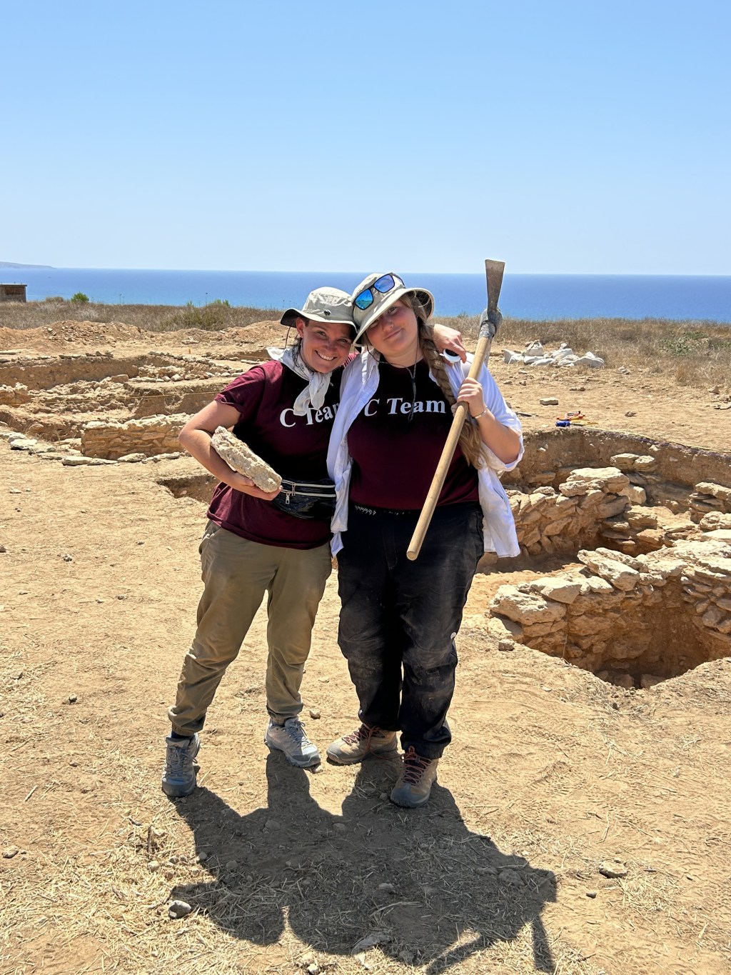 There are many jobs on an archeological dig site, especially when a new trench is being opened. So much dirt has to be moved, and it requires a lot of people to move the dirt, transport the buckets, and sift through the dirt. Sifting is often a two person operation: one person pours the dirt, the other shakes the sifter, and both pull out pottery. Excavating itself is another crucial task done on a dig site. Due to the cramped spaces in the trench, excavating is often one or two people per context, as you have to be very careful and there is not very much space. Paperwork, making artifact bags, and taking points and photos are often things that have to be completed, although they are often completed by the trench supervisors. Needless to say, there are many jobs to be filled on a dig site. The cool thing about this is that, if needed, people can switch jobs if they get really tired. For example, if someone is pickaxing and they are exhausted, they might switch with a person who is sifting which is a less strenuous job. That is one of the unspoken rules of the dig site. If you are doing a less physically demanding job and someone else is doing something very demanding, when they need a break, you should switch with them.