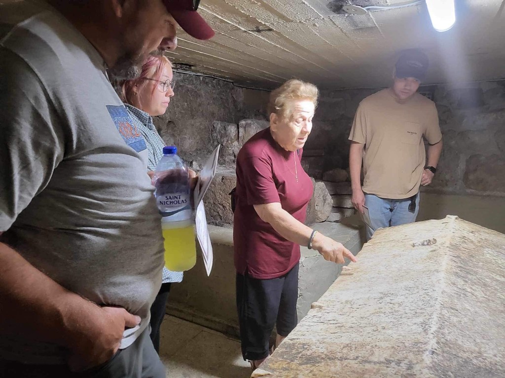 When we first went to the church of saint Lazarus, I was immediately intrigued. I love a good byzantine church (if you couldn’t tell), and I knew I wanted to return at some point along the trip. I was able to return with my family and while we were down in the tomb, we were stopped by a local who was asking us if she could tell us more about the church. She was an older woman, named Aspasia, who was born and raised in Cyprus her whole life. She was raised Greek Orthodox, and was actively practicing while we were there. She took us around the tombs and it was very interesting to hear her story of the church, and what her understanding of its history was, and how this history of the church is understood locally. She described how the department of antiquities discovered the tomb in chunks and at different times. The entrance of the tomb was discovered first, and then later when they wanted to extend the church for storage, they found the first sarcophagi with just a few bones. In another attempt to extend for space, is when they found the second sarcophagi with the inscription inside, which she says roughly translates to “the friend of Christ”. Which was later determined to be the bones of Saint Lazarus. Aspasia tells us that some of the bones were sent to Rome, but the bones found in the second sarcophagi were kept in Cyprus, and she took us upstairs to the box containing the “bones of Lazarus”. It was an ornate silver case adorned with intricate pictures of Saint Lazarus, gemstones and prayers. She gently kisses the box, and explained how lucky she is to have been in such a holy place. She then toured us around the frescos and explained to us each Saint, and their importance to the church. We thanked her for her time and as she walked us out, she taught us the importance of using the door that has the cross, with four smaller crosses in each quadrant. She says that this door is the entrance for all, and this symbol means that any religious denomination can enter, but only through this door. Once we were outside, she pointed out the missing domes from the church, and informed us that the domes were destroyed by the Turkish, as they felt it was too grand and didn’t need to compare with Turkish churches, which I thought was interesting to say the least. As we left she gave us some of the church cards depicting the blessing of Saint Lazarus. She was so excited to show us Americans around and said she was so happy that Cyprus was being appreciated. I told her about my fellow students and how much we all loved being here, and thanked her for sharing her history with us.