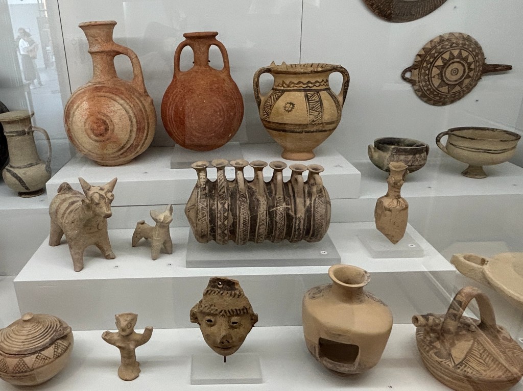 One thing that has continued to jump out at me at the various museums we have visited on Cyprus, including those in Nicosia, Paphos, and Larnaca, are the unique Cypriot creations dubbed ‘composite vessels’. There are composite vessels of all different shapes and sizes, a common example being a vessel made of bowls conjoined at their sides, with a handle of sorts protruding from the center of the amalgamation. One of my favorite pieces I’ve seen in a museum thus far was a vessel comprised of seven jugs smushed together to create one large jug with seven openings and seven handles (photo attached). This piece in particular sparked my interest in these unique objects, I’d never seen something like it before, so I started poking at Drs Stephens and Tom to see what they knew. I learned from them that this type of vessel is a style that is uniquely Cypriot, that nothing like them has been found anywhere else, but also that they were otherwise unsure of the vessels’ function or why the ancient Cypriots designed and created things in this way. So I took it upon myself to do some research, which has proved to be frustrating. Almost no information seems to exist on the internet regarding the composite vessels, at least not accessible to me.
