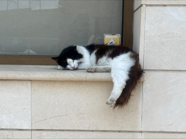 The cats in Larnaca live both on the streets and with people, but even the street cats seem to be taken care of,. In front of shops, the workers will place small water and food bowls for them. Or they will hang out around certain buildings and reside there,, much like bodega cats. Then they are also taken care of by the kindness of strangers, even tourists who will buy cat food from any kiosk and feed them. During the daytime,, the cats will make themselves scarce due to the heat, but will be more frequent in the streets at nighttime.
